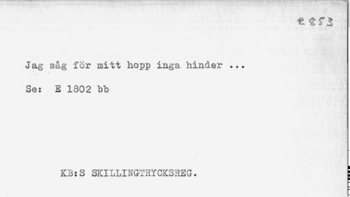 //// € //// Jag såg för mitt hopp inga hinder ... //// Se: E 1802 bb //// KB:S SKILLINGTRYCKSREG. ! //// H ////