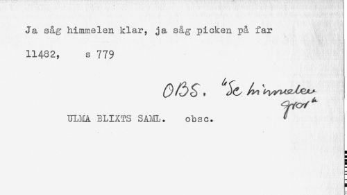 //// 11482, s 779 //// ULHÅ BLIXTS SAML. obsc. ^ ////
