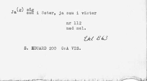 //// 7 (g) S&g //// Ja sau i öster, ja sau i väster //// nr 112 //// med mel. //// S. EDUARD 200 G:A VIS. //// - ////