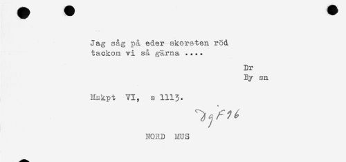 //// Jag såg på eder skorsten röd //// tackom vi så gärna .... //// Dr //// By sn //// Mskpt VI, s 1113. //// NORD ms ////