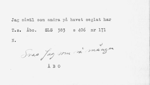 //// Jag såväl som andra på havet seglat har //// T.s. Åbo. SLS 383 s 406 nr 1?1 //// N. //// ÅBO //// a ////
