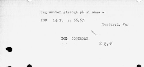 //// Jag sätter glasöga på mi näsa - //// IOD 14:2, s. 66,67. //// Tostared, Vg. //// x //// IOB GÖTEBORG ////
