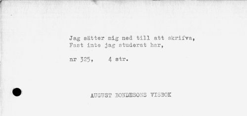 //// Jag sätter mig ned till att skrifva, //// Fast inte jag studerat har, //// nr 325, 4 str. //// AUGUST BONDESONS VISBOK ////