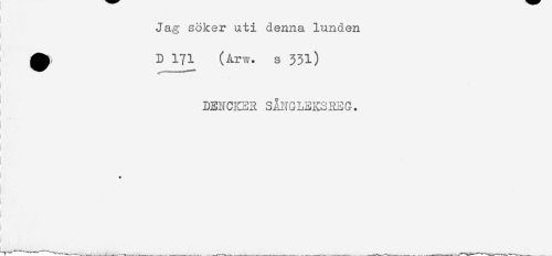 //// Jag söker uti denna lunden //// ^ D 171 (Arw. s 331) //// DENCKER SÅNGLEKSREG. //// W ////