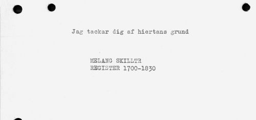 //// ... //// Jag tackar dig af hiertans grund //// * //// MELANG SKILLTR //// REGISTER 1700-1830 //// . //// - ////