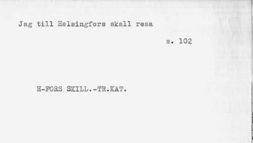 //// Jag till Helsingfors skall resa //// s. 102 //// H-FORS SKILL.-TR.KAT. ^ ////