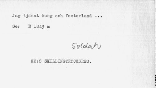 //// Jag tjänat kung och fosterland ... //// Se: E 1843 m //// KB:S SKILLINGTRYCKSREG. ////
