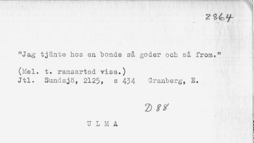 //// "Jag tjänte hos en bonde så göder och så from." //// - . - i — //// (Mel. t. ramsartad^visa.) //// Jtl. Sundsjö, 2125, s 434 Granberg, E* //// 2) ////