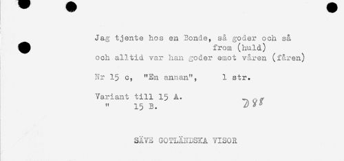 //// ! //// i //// ! //// i //// i //// Jag tjente hos en Bonde, så göder och så //// from (huld) //// och.alltid var han göder emot våren (fåren) //// Nr 1$ C) "En annan", 1 str. //// Variant till 15 A. //// 15 B. ^ y* //// SAVE GOTLÄNDSKA VISOR ////
