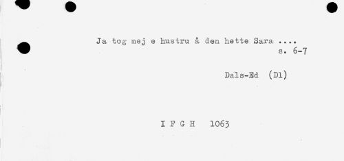 //// ^^ Ja tog mej e hustru & den hette Sara .... //// Dals-Ed (Dl) //// IF //// it //// ! ' //// IFGH IO63 ////