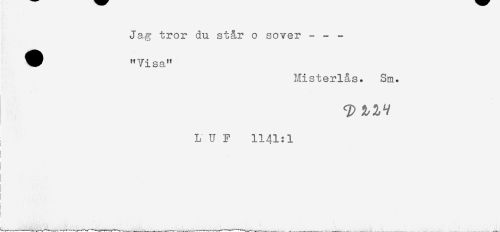 //// Jag tror du st&r o sover - - - //// ^ "Visa" //// Misterl&s. Sm. //// LUF 1141:1 //// ! //// ! //// ! //// I ////