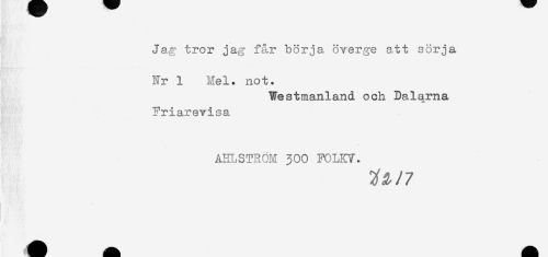 //// Jag tror jag f&r börja överge att sörja //// Nr 1 Hel. not. //// Westmanland och Dalarna //// Friarevisa //// AHLSTRÖM 300 FOLKV. ////