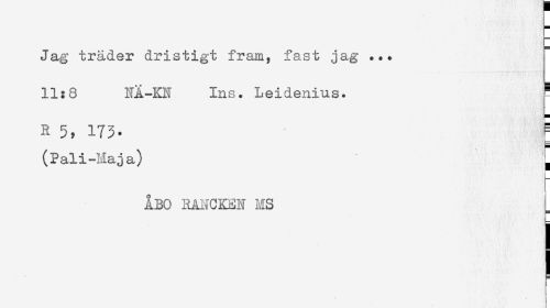 //// Jag träder dristigt fram, fast jag ... //// 11:8 NÄ-KN Ins. Leidenius. //// R 5, 173- //// (Pali-Maja) //// ÅBO RANCKEN MS ////