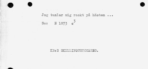 //// Jag tumlar mig raskt på hästen . .. //// 3 //// Se: E 1873 e //// KB:S SKILLINGTRYCKSREG. ////