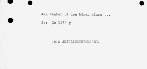 //// Jag tänker på den bönen klara ... //// ^ Se: Zz 1859 g //// KB:S SKILLINGTRYCKSREG. ////