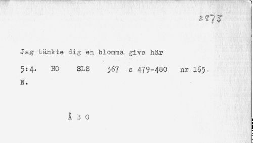 //// Jag tänkte dig en blomma giva här //// 5:4. HO SLS 367 s 479-480 nr I65 //// N. //// ÅBO , ////