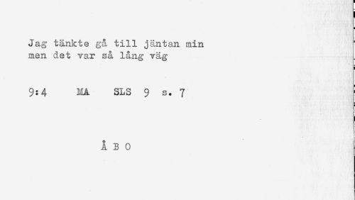 //// Jag tänkte gå till jäntan min //// men det var så lång väg //// 9:4 MÅ SLS 9 s. 7 //// * //// ÅBO ////