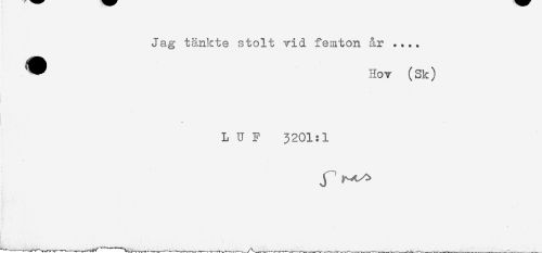 //// Jag tänkte stolt vid femton år .... //// ^ Hov (Sk) //// LUF 3201:1 //// r ^ ////
