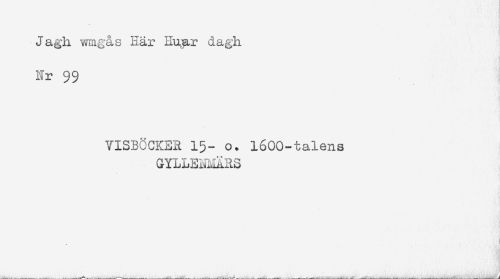 //// Jagh wmgås Här Ilu^r dagh //// Nr 99 //// YISBCCKER 15^ o. 1600-talens //// GYLLENMÄRS ////
