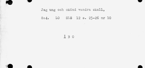 //// Jag ung och okänd vandra skall, //// 8:4. LO SLS 12 s. 25-26 nr 10 //// i //// ÅBO ////