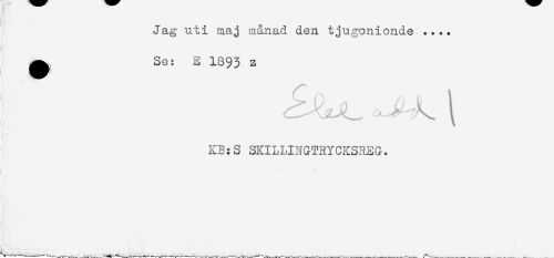 //// Jag uti maj månad den tjugonionde .... //// ^ Se: E 1893 z //// HB:S SKILLINGTRYCKSREG. //// ! //// - '' ! K ! ////