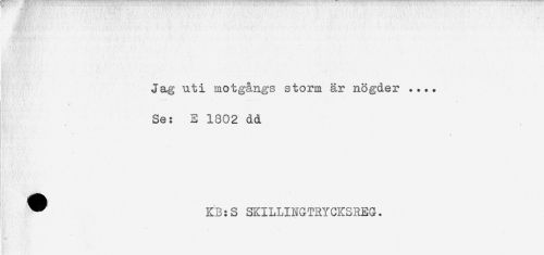 //// Jag uti motgångs storm är nögder .... //// Se: E 1802 dd //// *** . ^ . //// * ' //// ^ KB:S SKILLINGTRYCKSREG. ////