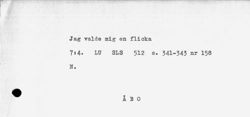 //// Jag valde mig en flicka //// 7:4- LU SLS 512 s. 341-343 nr 158 //// N. //// ^ ÅBO ////