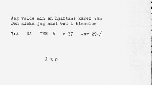 //// i //// Jag valde min en hjärtans kärer vän //// Den älska jag näst Gud i himmelen //// 7:4 SÅ INE 6 s 37 -nr 29*/ //// i //// ÅBO ////
