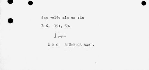 //// __Jag valde mig en. vän //// R 6, 191, 68. //// i //// ) ' //// j LN^ //// ÅBO SJÖBERGS SAML. ////