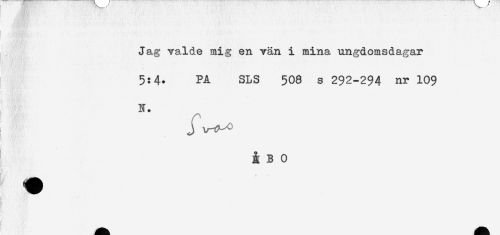 //// Jag valde mig en vän i mina ungdomsdagar //// 5:4. PA SLS 508 s 292-294 nr 109 //// N. //// ; j ^ //// å B 0 ////