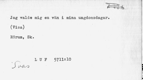 //// Jag valde mig en vän i mina ungdomsdagar. //// (Visa) //// Rörum, Sk. //// L U F 5711:10 //// J j ////