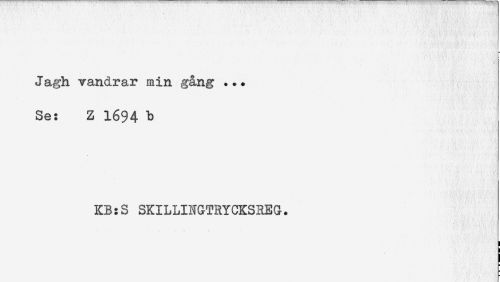 //// L //// Jagh vandrar min gång ... //// Se: Z 1694 b //// KB:S SKILLINGTRYCKSREG. ////