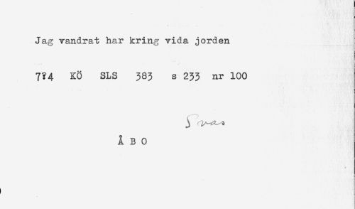//// Jag vandrat har kring vida jorden //// 7?4 KÖ SLS 383 s 233 nr 100 //// ÅBO //// ) ////