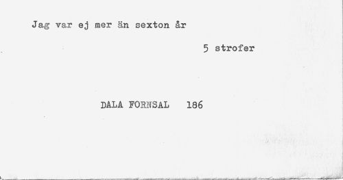 //// Jag var ej mer ån sexton &r //// 5 strofer //// * //// . //// DALA FORNSAL 186 ////