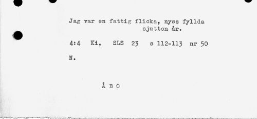 //// Jag var en fattig flicka, nyss fyllda //// ^^ sjutton år. //// 4:4 Ki, SLS 23 s 112-113 nr 50 //// N. //// * //// ÅBO //// * //// it-; ' //// i //// ]]] ////