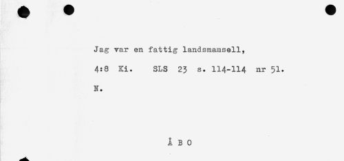//// Jag var en fattig landsmamsell, //// 4:8 Ki. SLS 23 s. II4-II4 nr 51. //// N. ////