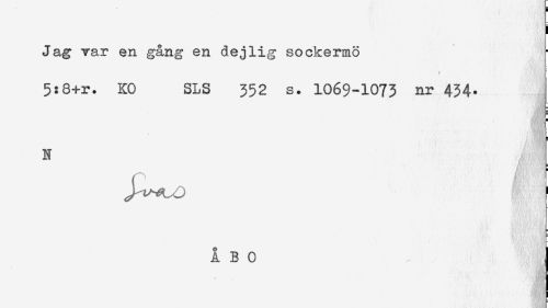 //// Jag var en gång en dej lig sockermö //// t - ' * //// 5:8+r. KO SLS 352 s. 1069-1073 nr 434. //// N ////