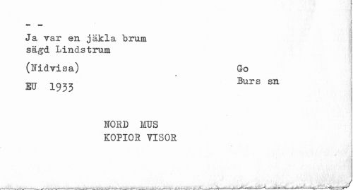 //// Ja var en jäkla bruna j //// sägd Lindstrura //// (ifidvisa) Go //// « //// - - Burs sn //// EU 1933 //// IfORD MUS KOPIOR YISOR ////
