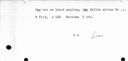 //// Jäg Tar en livad yngling, jjig fyllde nitton år ?. * B 72:5, s 168 Marinen 7 str. //// s A J t^o ////
