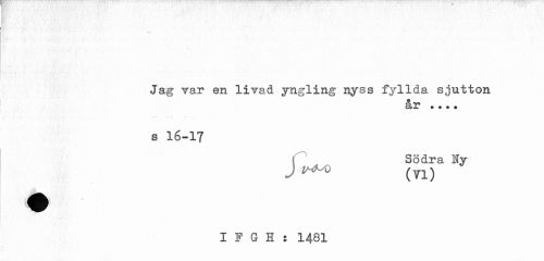 //// Jag Tar en livad yngling nyss fyllda sjutton //// ct2* • # § # //// , r-4' - I ¦ - //// s 16-17 //// ! Södra Ny //// J (TI) //// I F G H : 1481 ////