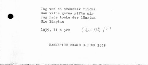 //// Jag var en svensker flicka ^^ som vilde gerna gifta mig //// Jag hade to eke der längtan Hio längtan //// 1839, II b 528 )JiAA /H t 1 } //// EåMMERICH BRÅGE O.IDÖJT 1839 //// __t... l r , . ... ___/ ... . , ^ \ \ ////