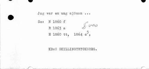 //// Jag var en ung sjöman ... Se: N 1860 f //// is <v //// R 1863 a //// E 1860 tt, 1864 c5, KB:S SKILLIHGTRYCKS REG. //// ..._..._ ___ ___.___i___ . . _ ////