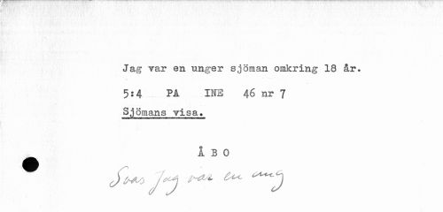 //// Jag var en unger sjöman omkring 18 år. //// 5:4 PÅ INE 46 nr 7 //// Sjömans visa» //// 1 B 0 ////