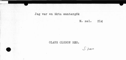 //// Jag var en äkta muntergök //// M. mel. 214 //// i //// OLAUS OLSSON SEG. //// dfc S //// i ////