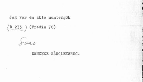//// j //// i //// Jag Tar en äkta munter gök //// ( D 253^ (Fredin 70) g //// i //// DBNCKER SilfGLBKSHBG. //// 5 //// = //// / ////
