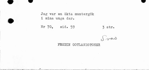 //// Jag Tar en äkta munter gök //// •i mina unga dar. //// Sr 70, sid. 59 3 str. //// S //// FHSDIlf GOTLANDS TOHER ////