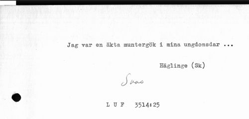 //// . • //// Jag var en äkta muntergök i mina ungdomsdar ?. • //// Häglinge (Sk) //// J) //// L U F 3514:25 ////