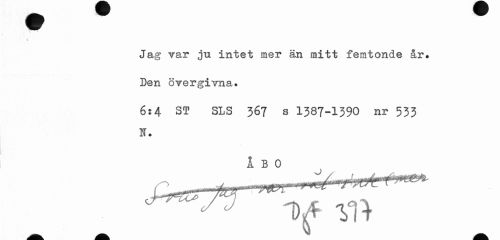 //// # //// Jag Tar ju intet mer än mitt femtonde år. Den övergivna. //// 6:4 ST SLS 367 s 1387-1390 nr 533 N. //// ^ B 0' 0 ////