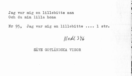 //// I //// i ¦ //// Jag var mig en lillebitte man Och du min lilla hona //// Ir 95, Jag Tar mig en lillebitte 1 str. //// ¦ //// /I tndl 3 fc //// i i //// SÄTE GOTLÄNDSKA VISOR ' ////