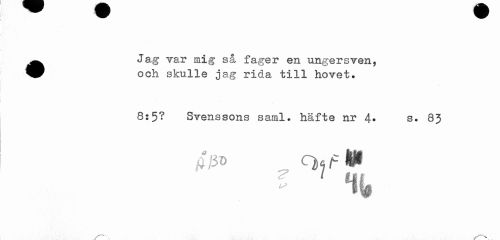 //// ^^ Jag var mig så fager en ungersven, //// ^P och skulle jag rida till hovet» //// 8:5? Svenssons saml. häfte nr 4* s. 85 ////